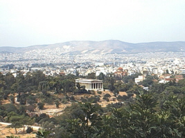 Pita und Tsazikki, von der Terasse aus das griechische Stadtleben und -treiben zu beobachten. Der Preis für die Pitta von 1,30 Euro gab auch keinen Anlass zur Beschwerde.