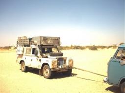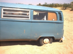 Ortseinfahrt ist ein tiefes Sandfeld, hier hat Peter seinen Bus mal wieder versenkt.
