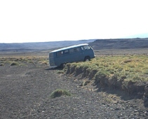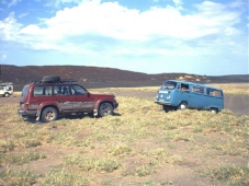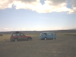 gut sich der VW Bus gehalten hat. Bei einer kurzen Pause stellte Peter schnell fest, daß sich eine Halteschraube seiner hinteren Stoßdämpfer verabschiedet hat. Ersatz hatte Dieter an Bord.
