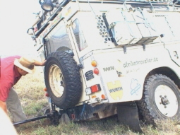 Glücklicherweise konnte der Bus aus eigener Kraft weiterfahren, in dem uns bevorstehenden Gelände wäre es fast aussichtslos
