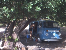 fuhren mal auf gut Glück hinein. Unser Plan war es, die Besitzer zu suchen und um “Schlafplatzerlaubnis” zu fragen. Hat geklappt und so konnten wir unser Nachtlager gut geschützt unter Bäumen aufschlagen.