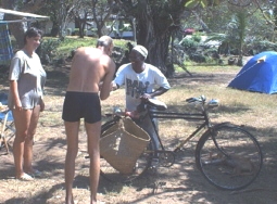 Den ganzen Tag kommen Fischverkäufer vorbei und offerieren fangfrischen Fisch. Ob Kalamaris, Scampi oder Snapperfisch, für jeden ist etwas dabei.