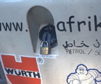 10 vollen Kanistern auf dem Dachträger losgefahren hätte er vielleicht halten können. Seit Addis Abbeba hat er vorne zwei Füße und Streben vor der Windschutzscheibe.