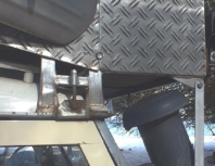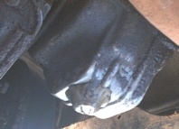 Der Unterfahrschutz vorne (ein Stück gebogenes Sandblech) und der Getriebeschutz