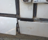 *Risse an den hinteren Fensterrahmen. Nicht nur an unserem Landy haben wir die Risse gesehen die an den