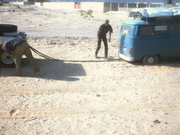 “Wenn da gleich kein Feuerball aufsteigt, muß da der Flughafen sein”. Nachdem wir eine Jenseitspfütze durchfahren hatte, blieben wir erstmal mit nasser Verteilerkappe liegen.