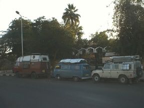 Hier wimmelte es nur so von Afrikareisenden. Und mittendrin unsere Kölner Bekannten Julianne und Christian mit dem VW LT