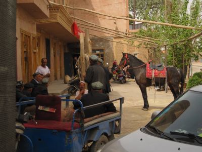 zwar noch in China, aber kulturel und ethnisch nicht mehr. Die Menschen um mich herum sehen so aus, daß ich mich nicht wundern würde sie in einem Dorf in Romänien zu treffen. Ich bin in Kashgar, im Land der Uiguren, am