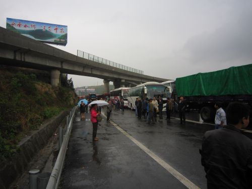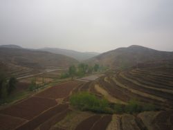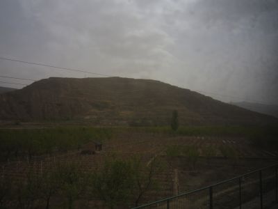 02.04.2013 - es geht weiter nach Xi’an. War nicht geplant, aber der direkte Zug nach Lanzhou ist über Tage ausgebucht. Es regnet und ist kühl. Nach dem wir die Stadt verlassen haben öffenbart sich das was aus meiner Sicht China so reizvoll mach - saftig grüne Gebirgszüge mit mit Terrassen, die jedes noch so kleine bepflanzbare Stückchen Boden nutzen. Gelb vom blühenden Raps und Wolkenverhangen. Leider sind die Scheiben des Busses wieder so dreckig, daß es sich nicht lohnt den Photo auszupacken. Ständig schlängelt sich irgend ein kleiner Fluss durch die Landschaft in seinem Kiesbett, hoch eingedeicht um bei den Fluten von denen man ab und an hört die Bebauung zu schützen. Plötzlich stoppt der Verkehr. Vollsperrung. Mindestens 1 1/2 Stunden stehen wir auf der Autobahn. Eine willkommene Pause für die vielen Raucher im Bus. Nur leider stehen wir an einer der unattraktivsten stellen der Strecke. Ich habe Magenschmerzen - ich werd mir doch nichts eingefangen haben? Ich schiebe es aus das Glas Whiskey das ich gestern zuviel hatte. Endlich geht es weiter.