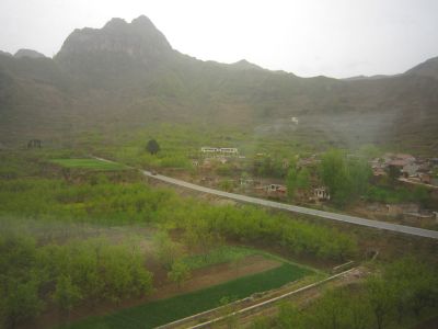 Das Umland von Xi’an ist wenig interessant. Aber sobald die Zugstrecke wieder ins Gebirge führt, ändert sich dies rasch.