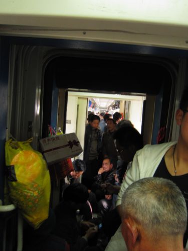 Überraschung - der Zug war soo voll, daß ich fast nicht einsteigen konnte. Nix wars mit “da ist vielleicht ein Schlafplatz”. Ich brauchte eine geschlagene 1/4 Stunde um nur den Rucksack abzusetzen, eine weiter um